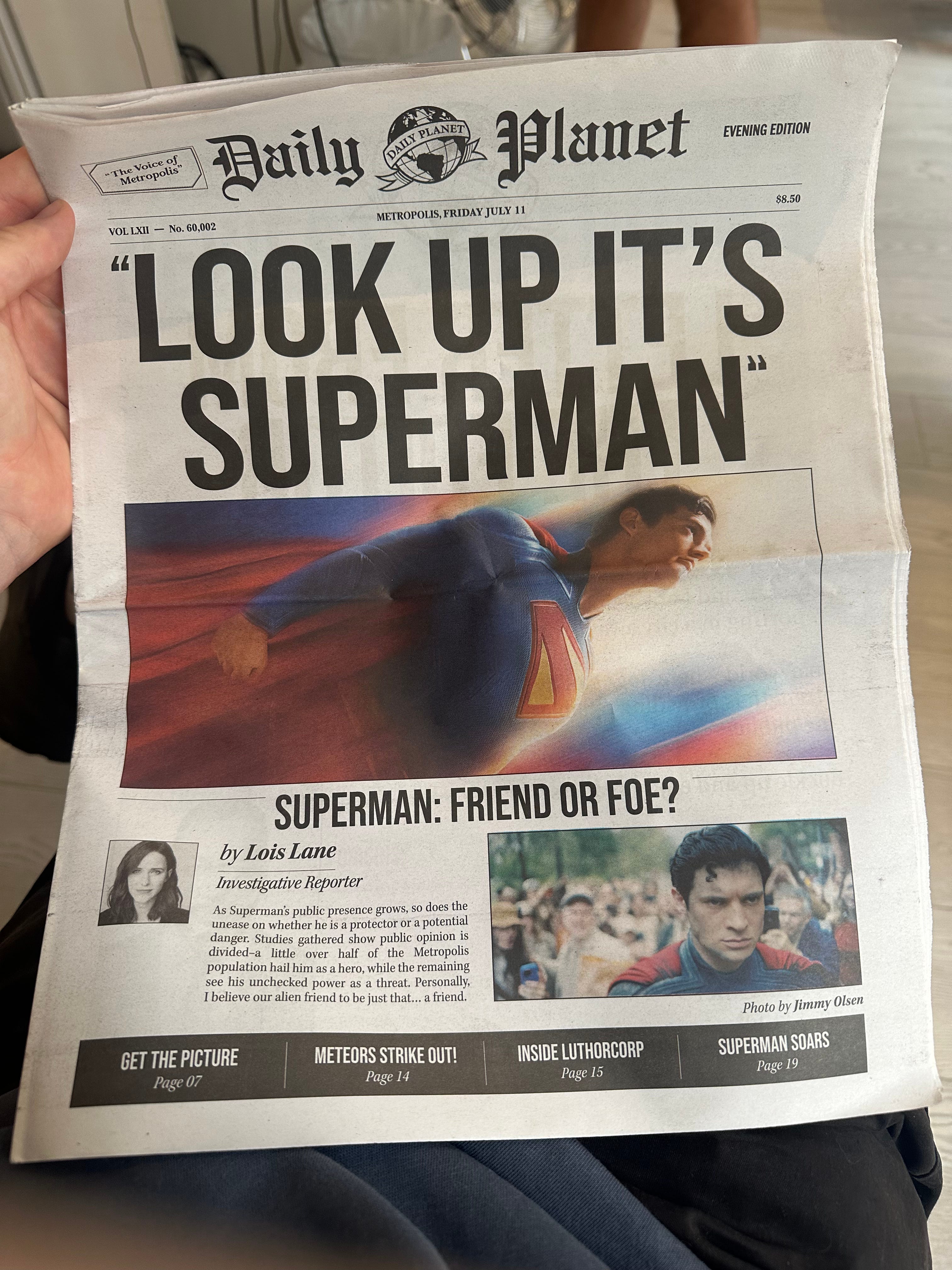 - Saw Superman. Really enjoyed Superman. More on that another time. Went to a pop up Daily Planet stand in Kings Cross station the week before: